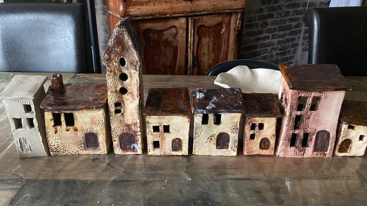 Natuurlijk laten we ook het keramiek niet liggen, we bakken tegeltjes af en vazen, asbakken en borden.